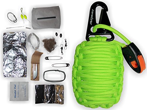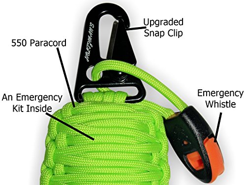Holtzman’s Gorilla Egg : 550 Paracord Grenade Emergency Kit - Your Survival Pack Has an Upgraded Military Grade Carabiner Snap Hook Is Stuffed with 18 Tools (Florescent Green)