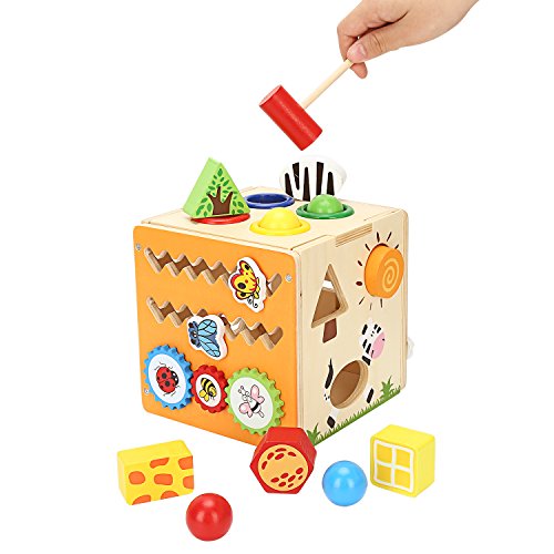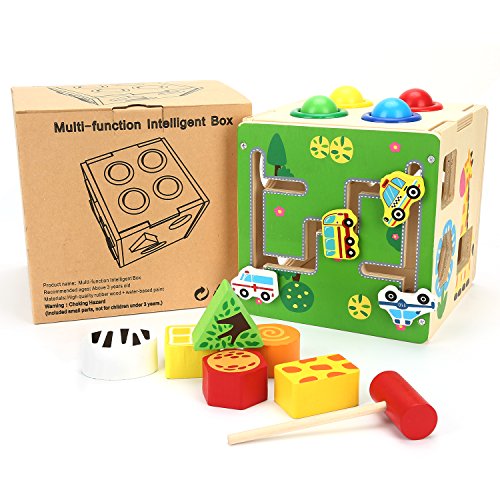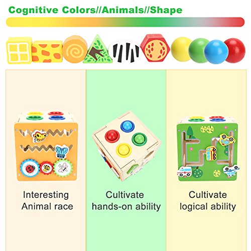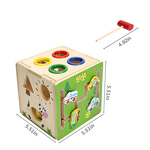 Multifunctional Activity Cube: Kids can play shape sorter,maze, take a race,beat the ball via the hammer with friends or parents on our activity cube