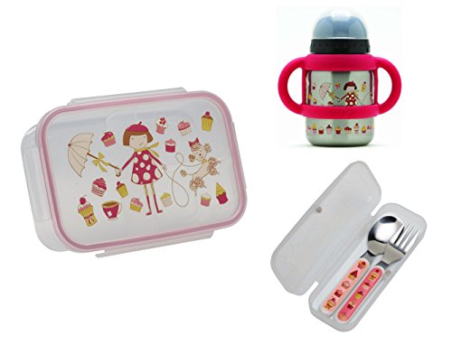 -. Title : Sugarbooger Divided Good Lunch Box, Silverware, and Flip N Sip Cup Set, Cupcake