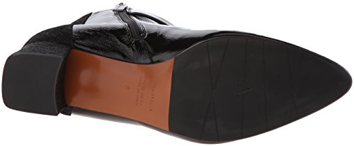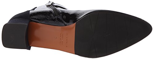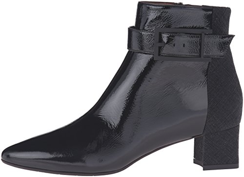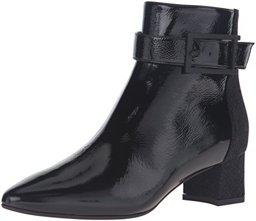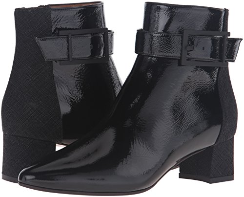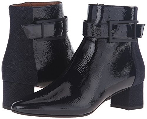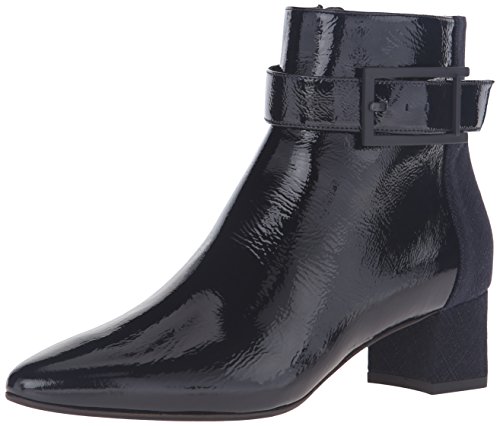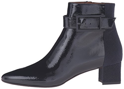 Product DescriptionSuede and naplak leather ankle boot with buckle detail and covered heel.0
