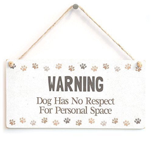 WARNING Dog Has No Respect For Personal Space - Funny Dog Warning Home Accessory Gift Sign Wooden Hanging Sign 4" X 8"