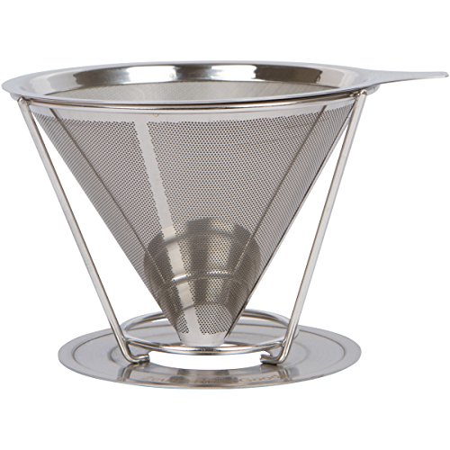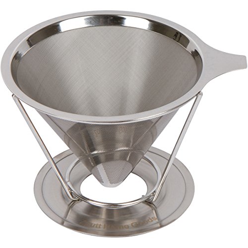 -. Binding : Kitchen -. Brand : Zcutt Home Goods -. Color : Silver -. EAN : 0713807574147 -. Feature : Reusable stainless steel pour over coffee dripperricher flavor than paper filters. -.Wide base easily rests on top of nearly any size mug / thermos / and small craft. -.Dual mesh filter is precision laser cut 18/10 stainless steel / letting the flavor through while keeps the grounds out. -.This coffee dripper only requires coffee grounds and hot water -- use to prepare just a single cup at a time or a small pot for 2-3 people. -.Just rinse the fine high-quality mesh filter under warm running water and dry thoroughly after use. -. Label : Zcutt Home Goods -. Manufacturer : Zcutt Home Goods -. PackageQuantity : 1 -. ProductGroup : Kitchen -. ProductTypeName : KITCHEN -. Publisher : Zcutt Home Goods -. Studio : Zcutt Home Goods -. Title : Stainless Steel Pour Over Coffee Dripper -- Reusable Permanent Drip Coffee Maker -. UPC : 713807574147