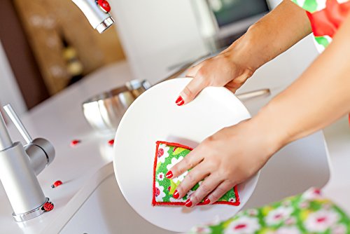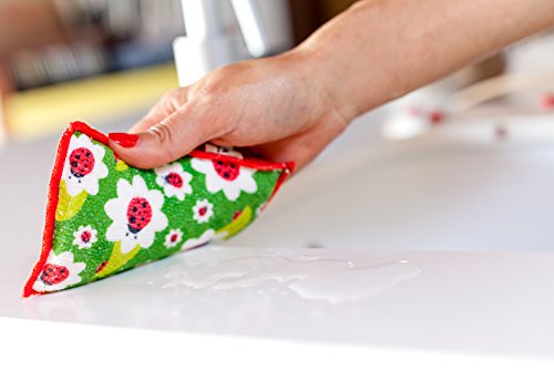 Vigar Ladybug Microfiber Double Use Sponge 2-Pack, 5-Inches by 3-1/2-Inches, Green, White, Red