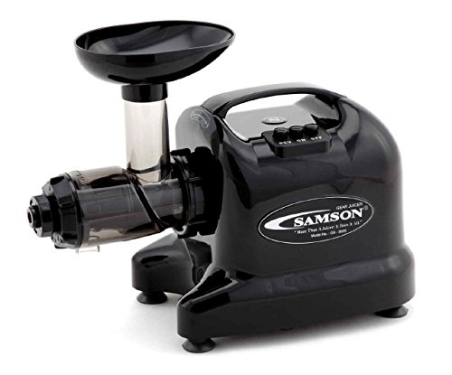 In a continuing effort to produce high quality, functional, easy-to-use and affordable juicing technology Samson Brands has introduced the Samson Advanced Multi-Purpose Juice Extractor. The new Samson Advanced series of juicers incorporates newer, studier and more efficient technology that makes operation a pleasure for new users as well as for aficionados that juice several times a day. The Samson Advanced is easy to use and easy to clean. The Samson Advanced is more than just a juicer. Choose an attractive color that blends into your kitchen. The Samson Advanced is available in Almond, Black, Chrome-colored, and White. Highlights - Single Gear Slow Rotates at 80 RPM to ensure high quality nutritional juice, FDA approved GE Ultem is used for the augur and screens making them 8 times stronger than traditional juicer parts, the stainless steel Juicing Screen is fully encased with GE Ultem, Juices a wide variety of vegetables, grasses and fruits, excellent for Wheatgrass and Leafy Greens - Less foam than twin gear juicers, Simple assembly with - quick lock - style attachments, quick and easy cleaning, top rack dishwasher safe (avoid drying cycle), make sorbets, applesauce, nut butters, baby food and frozen desserts, adjustable pressure control to maximize juice yield, continuous juicing with containers for juice and pulp, convenient carrying handle, easy operation using push buttons - On, Off and Reverse, Full manufacturers 15 year warranty on motor and operational parts. The following items are included - Samson Multi-Purpose Juicer Motor, Augur, Drum, Drum Cap, Juicing Screen, Mincing Cone, Cups for catching juice or pulp (2), Sieve (1), Cleaning Brush, Pusher / Tamper, Juicing Nozzle, Mincing Nozzle, Noodle Nozzles (2), Pasta Nozzles (2), Color Cook Book and Operations Operation Manual, Operations DVD, and Extra FuseFeature