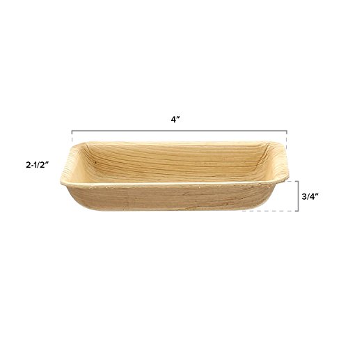 CiboWares Premium 4" x 2.5" Rectangle Areca Palm Leaf Dips, Eco-Friendly and Disposable for Home and Catering, Package of 25