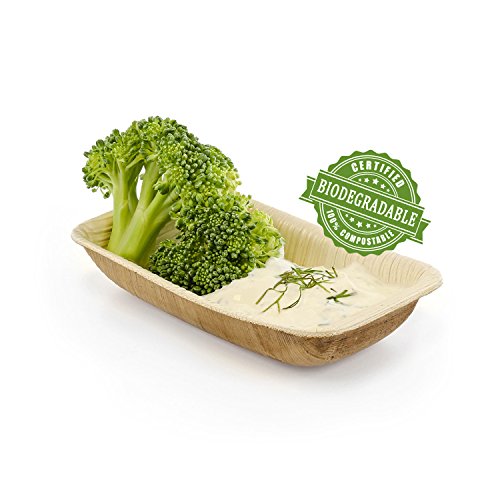 - KEEP THE ENVIRONMENT TOP OF MIND - By choosing palm, you get an eco-friendly product that is 100% biodegradable and compostable. Within 2 months, the leaves will have composted fully. Each palm leaf is completely hygienic and has been prepared without the use of chemicals, dyes, or resins. Best of all, no trees are harmed in their production since the leaves have fallen off the tree naturally.