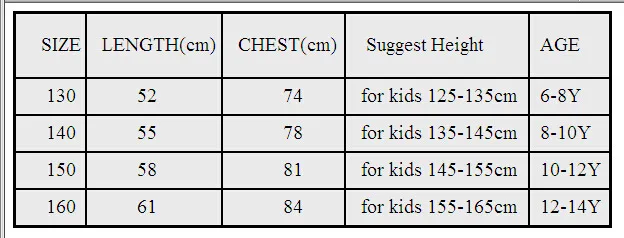 size 130 for(Height:125-135cmUS Size:6,7,8)