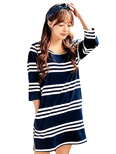 -. Feature : チュニック丈ボーダーの7分袖カットソーです。カジュアルなボーダー柄でゆったりシルエットが可愛らしさUP!サイドのスリットで足長効果バツグン◎ / 7分袖なのでカジュアルすぎず上品な商品です。お尻も隠れちゃう綺麗なシルエット♪しっかりした素材でお出かけにも大活躍。 / 着心地がよくお休み前のひと時や部屋でのリラックスタイムにもピッタリ♪ / サイズ(平置き実寸) 【M】身幅48cm 着丈78cm 肩幅 45cm 【L】身幅50cm 着丈81cm 肩幅 46cm 【XL】身幅52cm 着丈84cm 肩幅 47cm / ※ブランド名【MIKA&MAYA】の商品は、Amazonブラント登録商品です。
