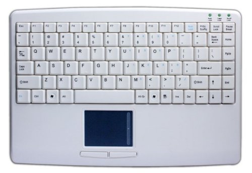 The ACK-540 Mini-Touch Keyboard provides an 88-key layout with an embedded numeric keypad, 12 dedicated function keys and built-in touchpad technology, in a small compact size. The keyboard's touchpad offers precise cursor control and left and right mouse buttons, eliminating the need for a mouse. The keyboard's integrated touchpad is conveniently located in a central position on the built-in wrist rest for additional comfort and minimal wrist strain. The keyboard is also compact and portable, so you can take with you just about anywhere.Feature