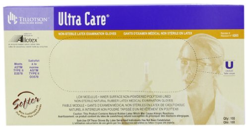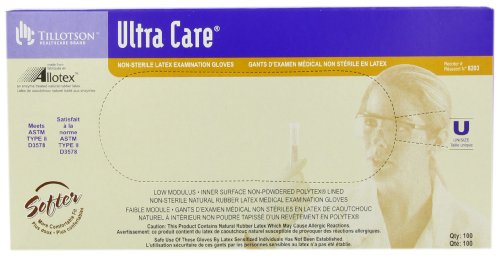 Tillotson Ultra Care Latex Exam Gloves, Unisize, 100 Count