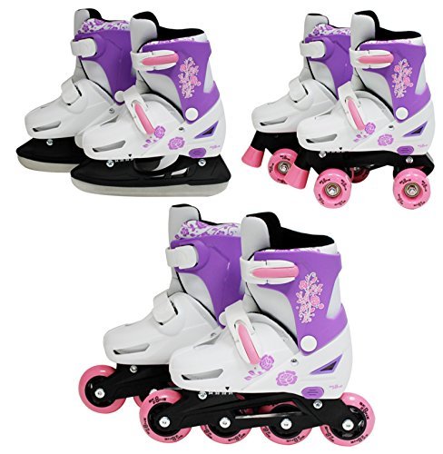 -. Title : SK8 Zone Mädchen Rosa 3in1 Roller Klingen Inline Rollschuhe Verstellbare Größe Kinder Pro Kombo Multi Eislaufen Stiefel Neu