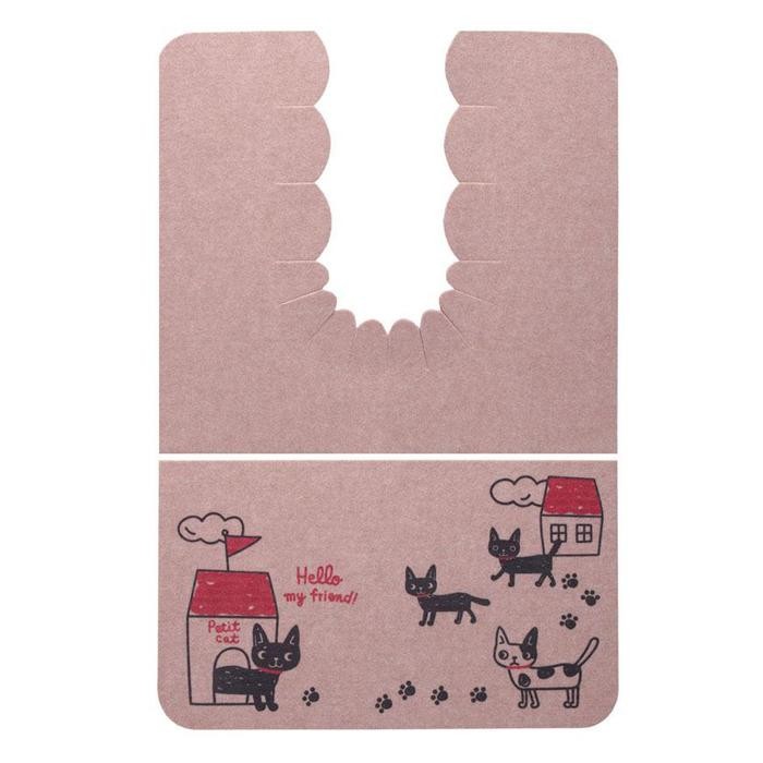 | 撥水加工で、水やおしっこを拭き取れます。どのタイプの便器にもフィットするデザインで、すき間を汚さない切り込み付。緑茶カテキン入りでアンモニア臭などの消臭効果もあります。掃除機にかけても吸い付かないのでお掃除ラクラク。2枚合わせになっているのでお洗濯も簡単。洗濯機で丸洗いもできます。 |