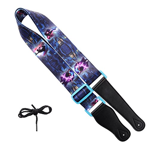 -. Brand : DYZD -. Feature : Dimensions: length 59 inches, width 1.96 inches (Adjustable from 49 inches to 70 inches) / Strong Eco-friendly polyester, dirt and stain resistant. / Secure leather holes and bonus pick pocket makes it great adults or kids guitar strap. / 100% Microfiber leather ends provide strength and durability you can trust. / New design pattern - Collection is inspired by the fashions and styles of rock and roll. -. Label : ZHAOWEI -. Manufacturer : ZHAOWEI -. MPN : AEC10024200034 -. PackageQuantity : 1 -. PartNumber : AEC10024200034 -. ProductGroup : Musical Instruments -. ProductTypeName : INSTRUMENT_PARTS_AND_ACCESSORIES -. Publisher : ZHAOWEI -. Studio : ZHAOWEI -. Title : Guitar Strap - Heat Transfer Printing,Wide Adjustment Range and Secure Leather Holes, Suitable for Electric and Acoustic Guitar or Bass
