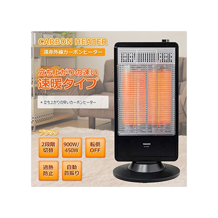 원본상품명: 山善(YAMAZEN) 遠赤外線カボンヒタ(900W/450W 2段階切替) 自動首振り機能付 ブラック DC-S097(B)