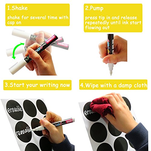 Includes 128 round chalkboard stickers in 2 sizes and a 3MM erasable white Chalk Marker Pen.48 labels are in the size of 2.5",80 smaller labels are 2"