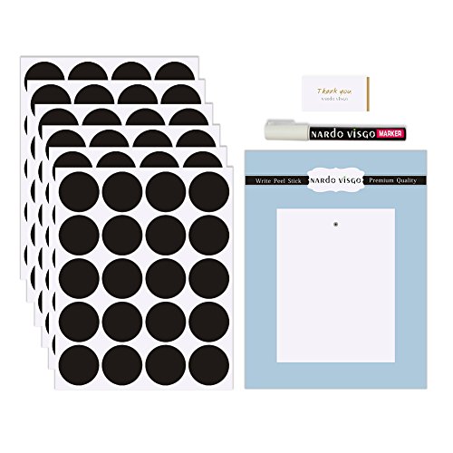 Nardo Visgo Round Chalkboard Labels-128 Reusable Removable Chalkboard Stickers with 3MM White Chalk Marker for Labeling Jars,Canisters and Organize Your Home,Kitchen and Office(Black)