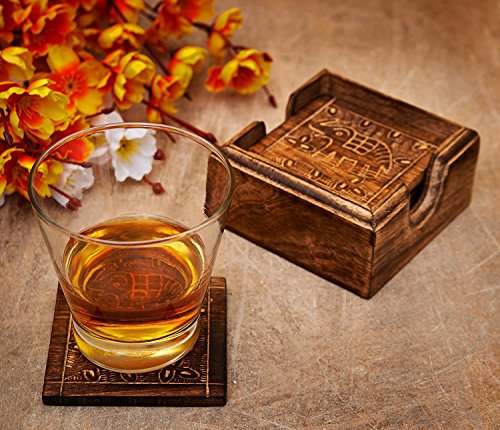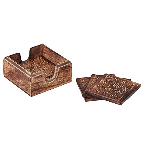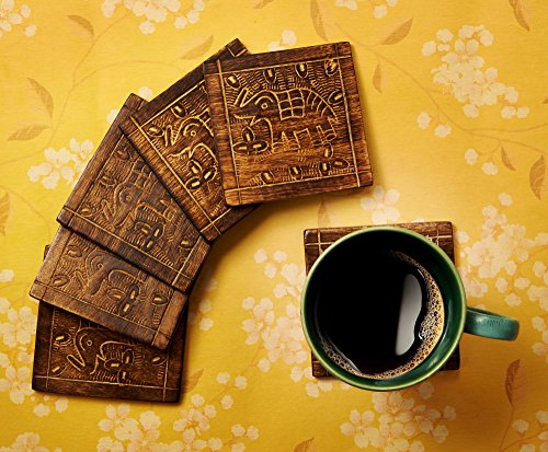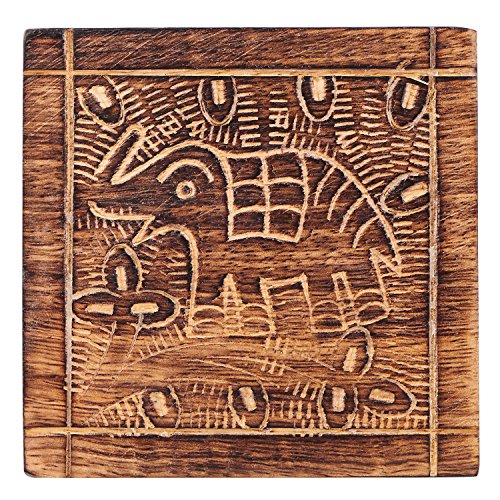 Drink an Coasters Set of 6 Elephant Design Wooden For Tea Coffee Beer Beverage Glass Dining Square Design Handcrafted Tabletop Home Decor Kitchen Accessories - Mango Wood