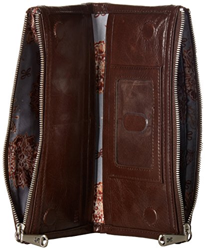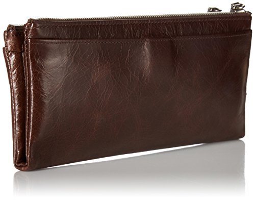If you're looking for a wallet that's as versatile as you are then this Genuine Leather Vintage Taylor Clutch Wallet by Hobo is your ideal match. With a focus on the everyday woman, Hobo is all about making wallets and purses that are designed with all the features women are looking for in their accessories. A dual magnetic closure secures the 4 credit card slots, 3 bill slip pockets, and ID window w/ thumb glide when not in use giving you and added sense of protection. For quick access 2 additional zip pockets with snap closure and 2 zippered pockets are featured on the exterior for storing your phone, keys, or credit card. Measures 8.25" x 4" x 1".Feature