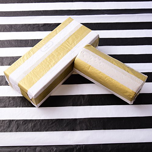 Shappy stripes tissue paper stripes wrapping paper, 28 inch by 20 inch, 30 sheets Stripes wrapping paper set: Each strip wrapping paper is approx. 70 x 50 cm/ 28 x 20 inches, large enough to wrap your gifts well, good decoration choice. Metallic look gold stripes applied to white tissue paper, the stripe pattern is clear and bright, good quality paper is not easy to tear. Wide applications: Stripes paper papers are suitable for decorating weddings, festivals, gifts boxes or bags and more, you can create tissue pom pom flowers and craft projects with them. Decorate parties of different themes, festive embellishment for increasing atmosphere. Specifications: Material: tissue paper Color: gold and white Size: approx. 70 x 50 cm/ 28 x 20 inches Quantity: 30 sheets Package includes: 30 Sheets of strip tissue paper 0