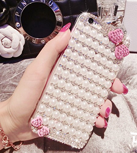 Iphone 6 Plus/6s Plus Case, Luxury Series Bow Pearl New Unique Fashion 3D Bling Handmad Diamond Crystal Rhinestone Cinderella Fairy Tale Slim Hard Back Case Cover