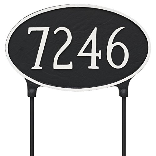 Montague Metal TSL-0001S1-L-BW 8.5" x 13.5" Double Sided Lawn Classic Oval Address Sign Plaque with Stake, Standard, Black/White