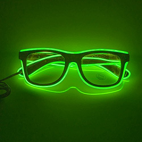 -. Feature : 3 Glowing Mode : Steady On;Flashing/Blinking Glow;Sound Activated Mode (Tune to sound or bass with sensitivity dial) / Stay vibrant and lit up for anywhere from four to fifteen hours depending on the battery quality used / Application scenes :great for any parties, festivals, raves, concerts, weddings, bachelor or bachelorette parties / PC plastic frame with 13500 lines firework glasses, durable and good effect.Different lens colors available, can meet different people favor. / Ultra-high EL wire to make the light blow out, provide excellent visual effect at night.