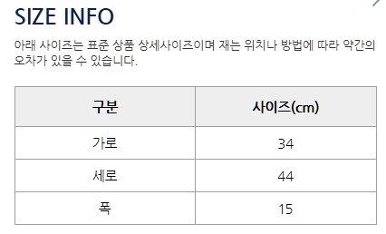 | 소재 | 겉감 : 나일론 100% 배색1 : 폴리에스터 100% 안감 : 폴리에스터 100% |