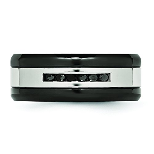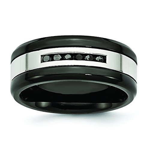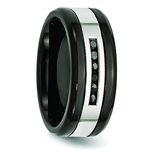 -. Title : 9mm Black Plated High Polish Finish Stainless Steel Black Diamonds Wedding Band