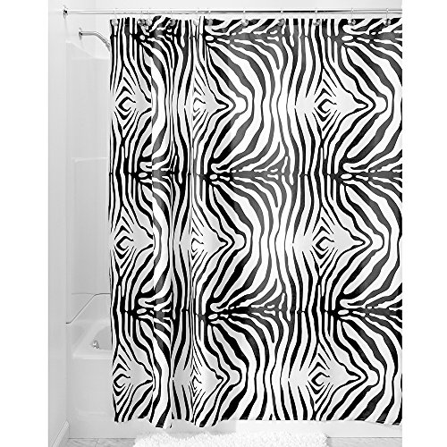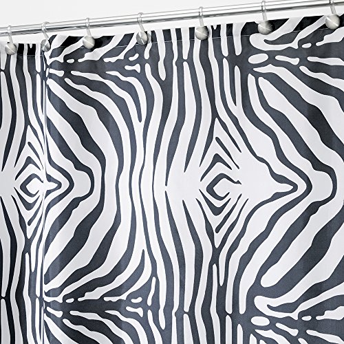 InterDesign Zebra Fabric Shower Curtain, 72 x 72, Black/White