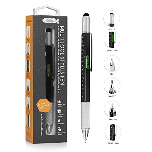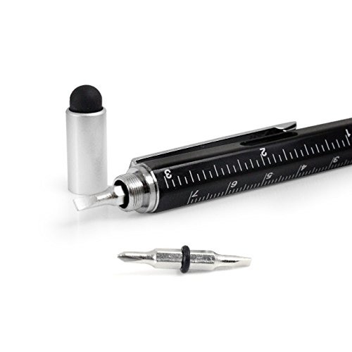 -. Feature : A multi-use, multi-tool stylus pen combining 6 handy functions. So wherever you are and whatever you're doing, all you will ever need to carry with you is this one convenient stylus pen / Works as a stylus on all capacitive touch screen devices for easy interaction with your device. It also comes with a handy clip so it can be attached to a case or pocket and be in easy reach when needed / The other end doubles as a ballpoint ink pen, so you're never left searching for disappearing biros to jot things down with / In addition, an in-built spirit level and P.R.Inted ruler make it that much easier to take a quick measurement or straighten something / Finally hidden within the stylus, is a dual headed screw driver (flat & Phillips head), great to have on hand for a quick fix