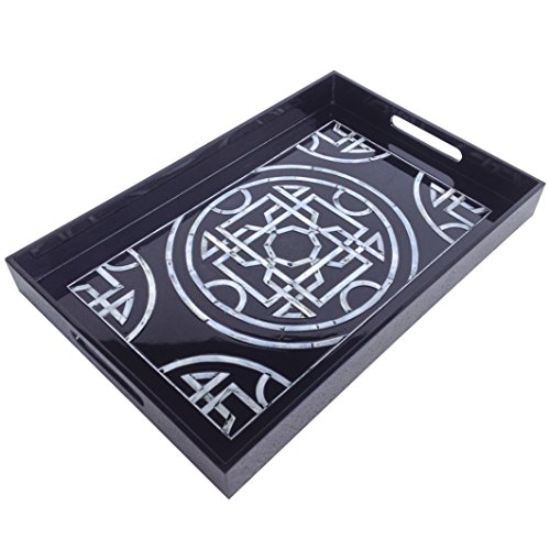 A&B Home KIH39194-BLAC Mother Of Pearl Inlay Lacquered Tray