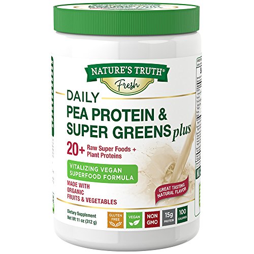 Get your greens by the scoop! Nature's Truth Pea Protein & Super Greens is a vegan-approved way to add 15 grams of protein into your daily routine. Our advanced formula is made up of 20+ superfoods such as greens, red, vegetables, and fruits in an easy-to-take powder. Grab your bottle and enjoy the great taste of this gluten-free supplement today!Feature