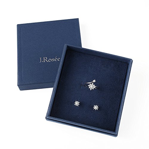 -. Title : Ring and Earrings Set, Christmas Gift with Exquisite Package 925 Sterling Silver J.Rosée Fine Jewelry for Women Adjustable Ring and Flower Earring