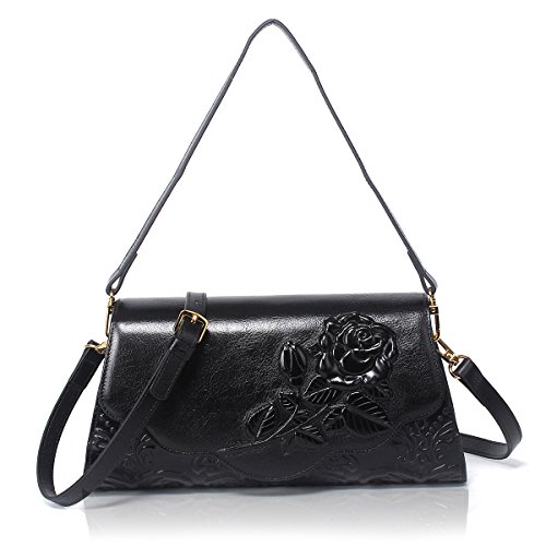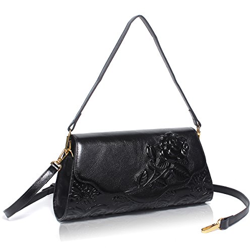APHISON Designer Unique Embossed Floral handbags Women Genuine Leather Cross Body Shoulder Bags
