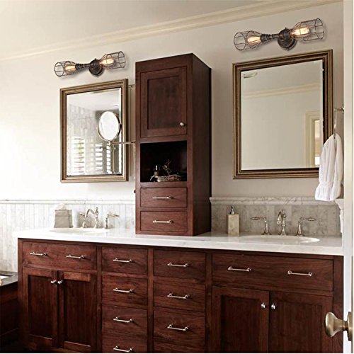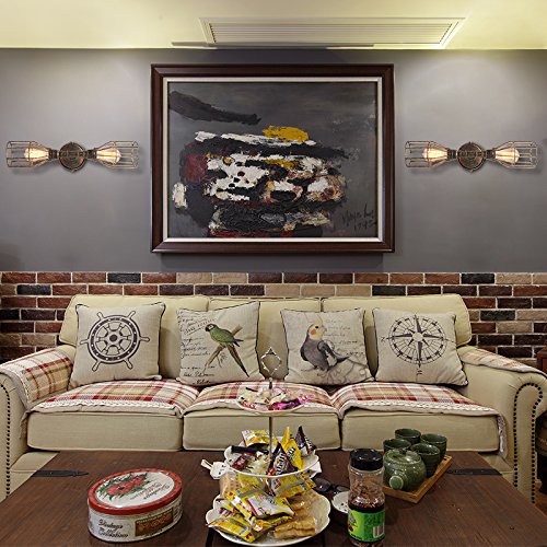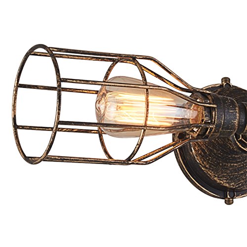 Fancy Industrial Style - a retro vintage wall lamp lights shade Edison metal style with iron cages 2 lights wall sconce indoor wall fixture cast enough light for bathrooms, living room, kitchens and dining rooms