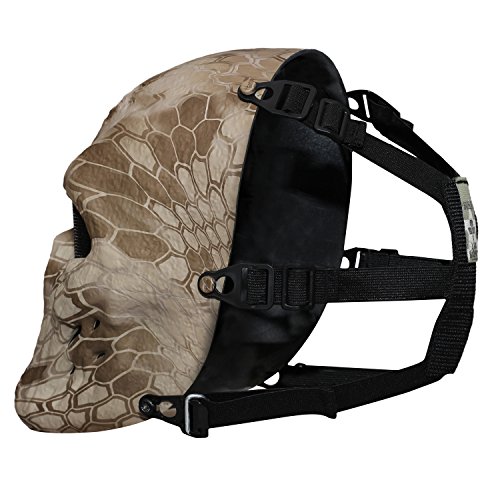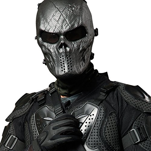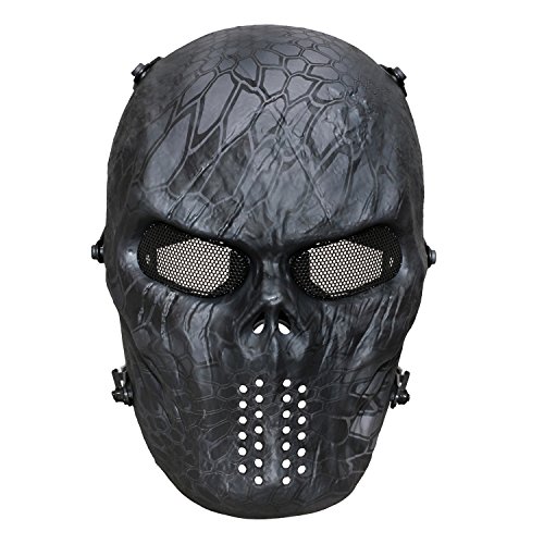 -. Feature : Thermoplastic polyurethanes (TPU) made, which is environment-friendly, poison free and no smell. The material is very thick and very protective during airsoft game. / Black metal mesh protection your eye, thus completely eliminating the possibility of fogging. Rubber padder inside on forehead and cheek, they can absorb the impact of BBs, airsoft. / The mask is secured snly by Three pairs of adjustable elastic straps in the back and does not fall off easily while running and shooting. offers full face and head protection while you're on your favorite extreme outdoors sport. / Universal size fit most teens and adults with adjustable elastic straps. Choose your style, camo, Ghost, Black, tan and more! / JIUSY commitment to all customers: If for any reason you're not 100% satisfied with our airsoft mask simply contact us for a hassle-free full refund.