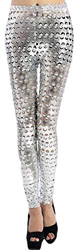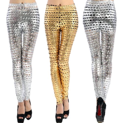 -. Feature : Silberne oder goldene glitzer Damen Leggings Legging mit Löchern / Das Material ist dehnbar / Größe: One Size, aber passend für ca. 34-40 / Farbe: silber oder gold / Material: 85% Polyamid, 15% Elasthan