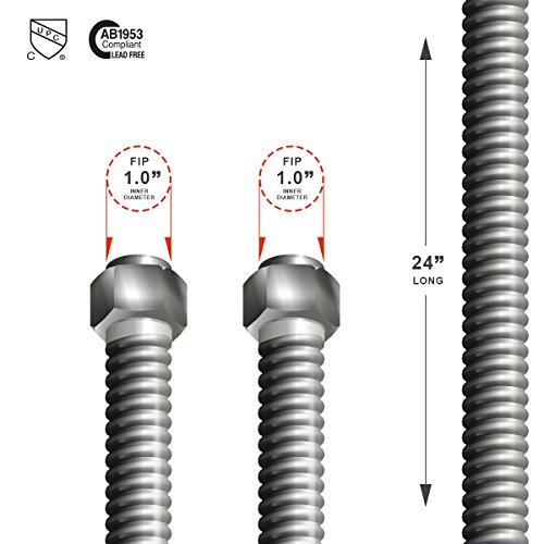 Flextron FTWC-S01-24H 24 Inch Lead Free Corrugated Stainless Steel Tube Connector for Water Heater With 1 Inch FIP & 1 Inch FIP, Durable, Maximized Corrosion Resistance & Performance