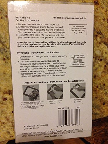 Studio : TradeMart Inc. Publisher : TradeMart Inc. Binding : Toy Product Description What's for dinner? Our Gourmet Dinner Fill-in Invitations are adorable, perfect for any dinner party! This generic party invitation can be used for any occasion you want to celebrate. The lively colors appeals to young girls and adults. Print on these printable invitations and fill in the details for your next celebration or occasion. 0