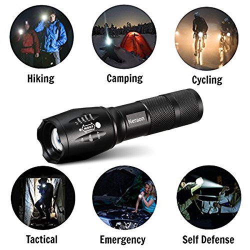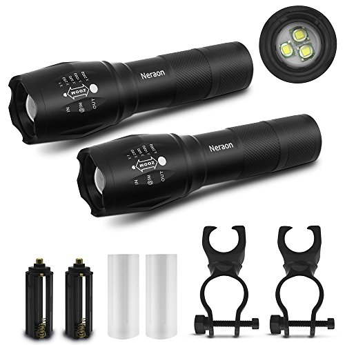 Neraon [2-PACK] 3 LED Light Tactical Flashlight, Neraon T6 3000 Lumens Super Bright Handheld Rainproof Zoomable Tactical Flashlight with 5 Light Modes for Outdoor Camping Hiking.