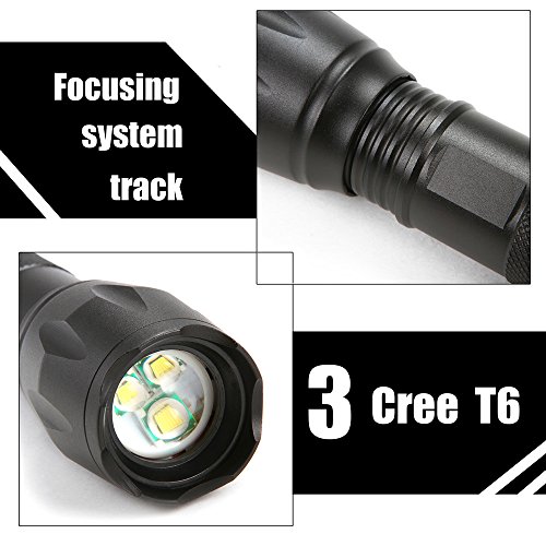 - ★Ultra Bright Tactical Flashlight--Newest 3*T6 lights 3000 Lumens Handheld LED Flashlight with Adjustable Focus and 5 Light Modes, Outdoor Water Resistant Torch, Powered Tactical Flashlight for Camping Hiking etc.