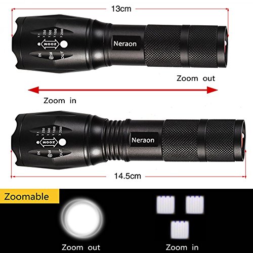 - ★Zoomable Tactical Flashlight--zoom in or out to adjust bright intensity & illumination areas for distant observation and wide range illumination.Focus range of 200m to 500m.