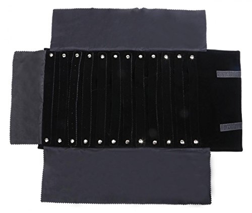 - Soft and luxurious suede jewelry roll - Small packing size to put in the handbag or carry-on luggage - 12 Removable earring bars - Side cloth flap to protect necklace from scratched - Velcro closure and small foldable size - Luxurious yet affordable - Bags only, other things are not included.