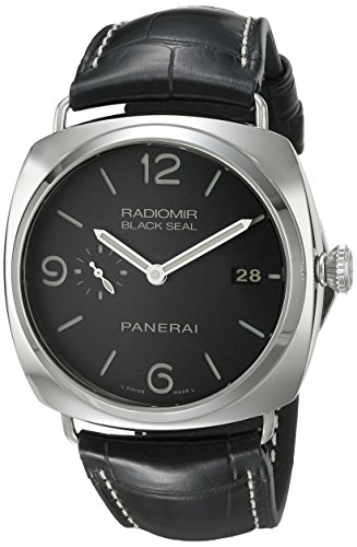 -. Binding : Watch -. Brand : Panerai -. Department : PAM00388 -. EAN : 7612456841743 -. Feature : Watch in cushion-shape case featuring date window at 3 o'clock, stenciled hour markers, and antique-style crown / 45 mm stainless steel case with antireflective-sapphire dial window / Swiss automatic movement with analog display / Croco-embossed leather band with buckle closure / Water resistant to 100 m (330 ft): In general, suitable for swimming and snorkeling, but not scuba diving. -. Label : Panerai Watches -. Manufacturer : Panerai Watches -. Model : PAM00388 -. MPN : PAM00388 -. PackageQuantity : 1 -. PartNumber : PAM00388 -. ProductGroup : Watch -. ProductTypeName : WATCH -. Publisher : Panerai Watches -. Studio : Panerai Watches -. Title : Panerai Men's PAM00388 Radiomir Stainless Steel Watch with Black Leather Band