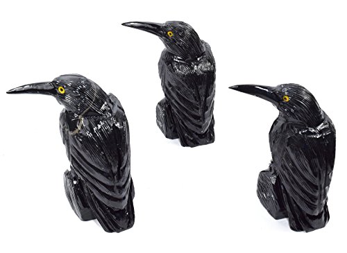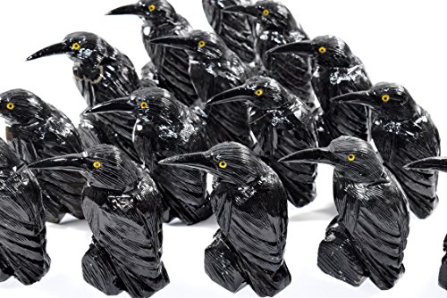 -. Title : 3.1" Black Onyx Raven Hand Carved Decorative Crystal Crow Figurine Natural Mineral Sculpture Collectible Stone Bird Statuette - Peru