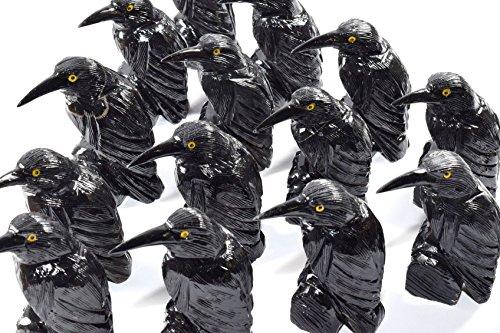 -. Feature : You will receive one of the Black Onyx Raven similar to the one in the listing, the size and the color of the bird may slightly vary as well due to the fact that all minerals are different. (see photo)! Approximately Size: 80mm x 41mm x 35mm / 3 3/16 x 1 5/8 x 1 3/8 Inches; Approximately Weight: 170g-195g / 6oz - 6.9oz. Such complicated figurine is hard to polish, that is why it was covered with colorless lacquer to add a beautiful shining effect to the figurine. / Originally, almost all colors of chalcedony from white to dark brown and black were called onyx. Today when we think of onyx we often preface the word with black to distinguish it from other varieties of onyx that come in white, reddish brown, brown and banded. A variety of onyx that is reddish brown with white and lighter reddish bands is known as sardonyx. / Chemical Formula: SiO2; Mohs scale hardness: 6.5-7; Color: black; / Onyx is formed of bands of chalcedony in alternating colors. It is cryptocrystalline, consisting of fine intergrowths of the silica minerals quartz and moganite. Its bands are parallel to one another, as opposed to the more chaotic banding that often occurs in agates. / (The above information is provided solely for informational purpose. Kindly note that all stones are offered for decorative purposes only. Please, handle your stones with great care, do not grind or crumble them, do not dip or add them into your food or drink, do not use any parts of them in any elixirs, potions, lotions etc. Always make sure you wash your hands before and after working with your crystals.)