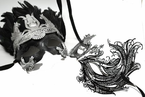 -. Title : Men's Silver Feather Hercules & Hugh Swan - His & Hers Masquerade Couples Venetian Design Masks 2 Piece Colored Set - Perfect Couple Mardi Gras Majestic Party Halloween Ball Prom by QJ