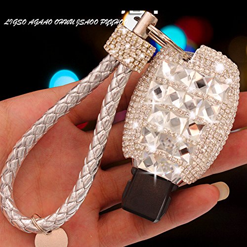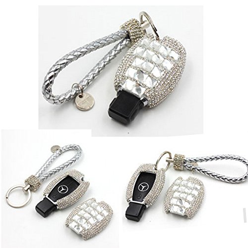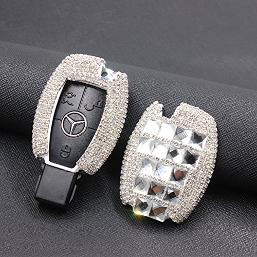 YIKA Benz diamond key shell Car Key Case Cover Holder Pouch Remote Key Chains Key Bag For Mercedes-Benz C E S M CLS CLK GLK GL Class, etc(Silver)