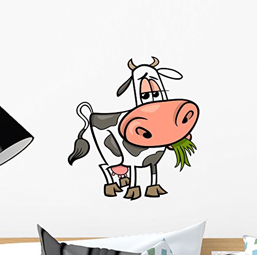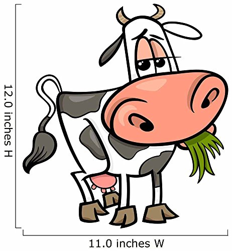 Cow Farm Animal Cartoon Wall Decal by Wallmonkeys Peel and Stick Graphic (12 in H x 11 in W) WM93202