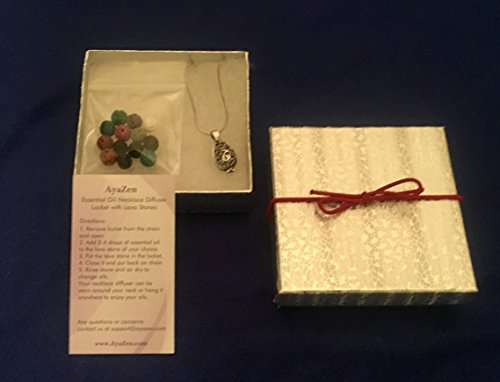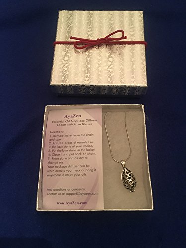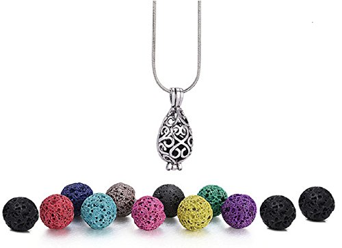 Premium AyaZen Teardrop Essential Oil Diffuser Necklace With Lava Stones Aromatherapy Locket Pendant Gift Set Chain & Multi-Colored Beads